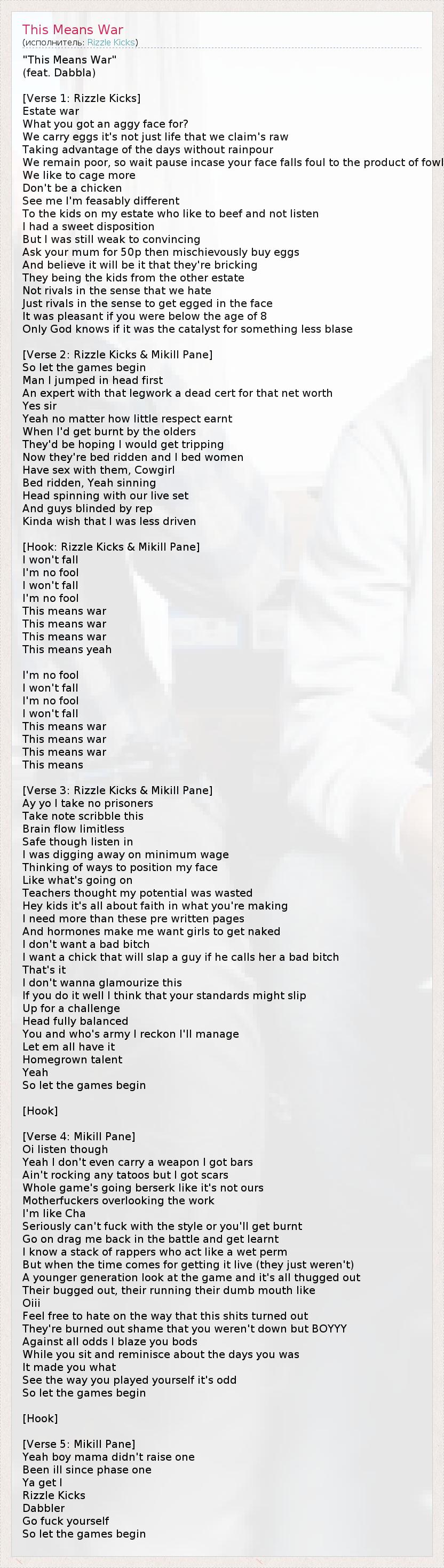 [Куплет 2: Rizzle киков & AMP; Mikill Панель]