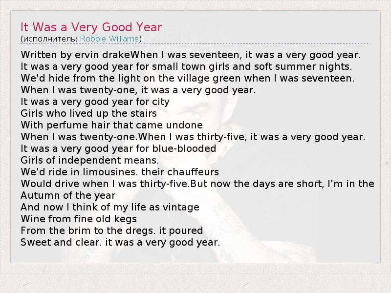 А как ты думаешь, о чем песня "It Was a Very Good Year" ?