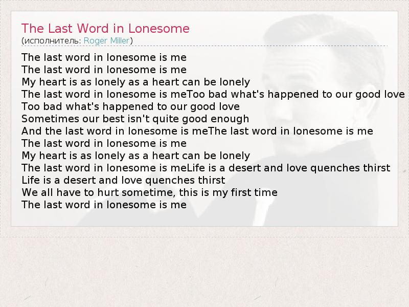 А как ты думаешь, о чем песня "The Last Word in Lonesome" ?