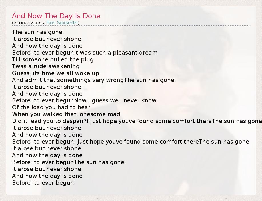 А как ты думаешь, о чем песня "And Now The Day Is Done" ?