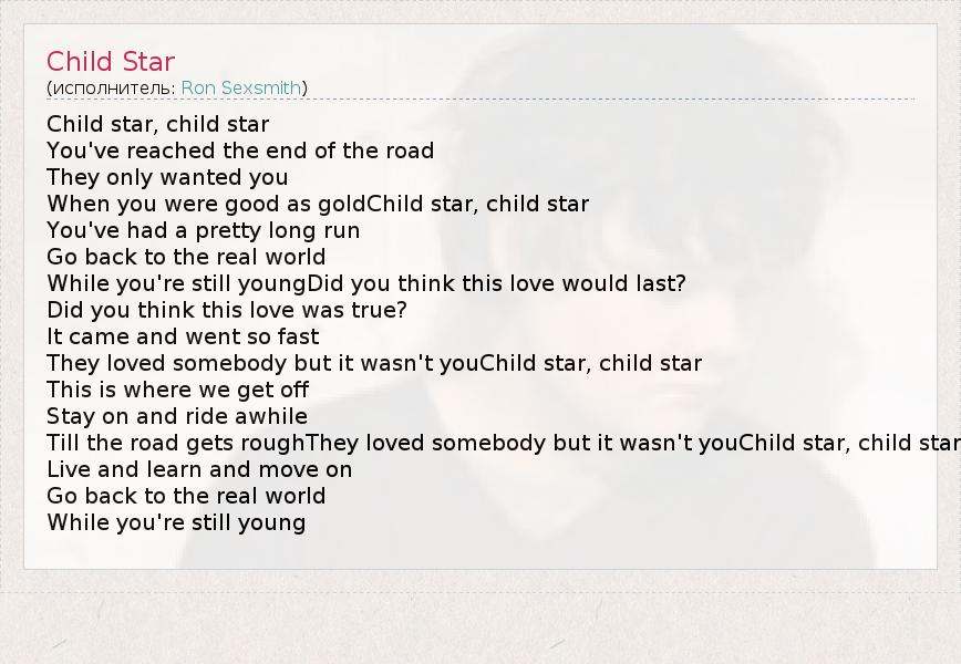 Till the road gets roughThey loved somebody but it wasn't youChild star, child star