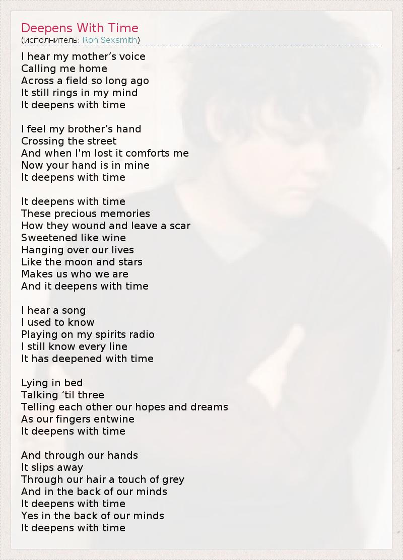А как ты думаешь, о чем песня "Deepens With Time" ?