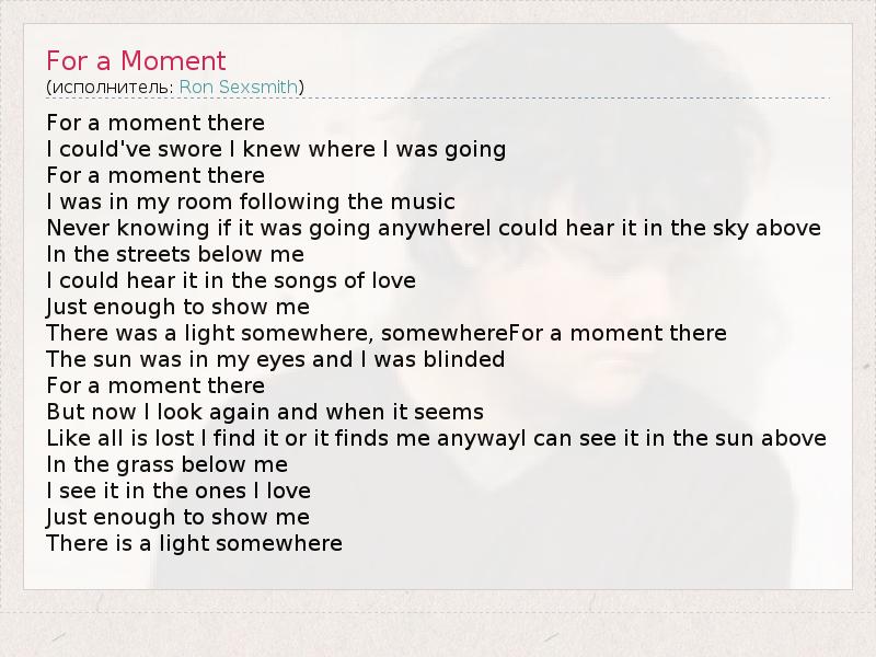 А как ты думаешь, о чем песня "For a Moment" ?