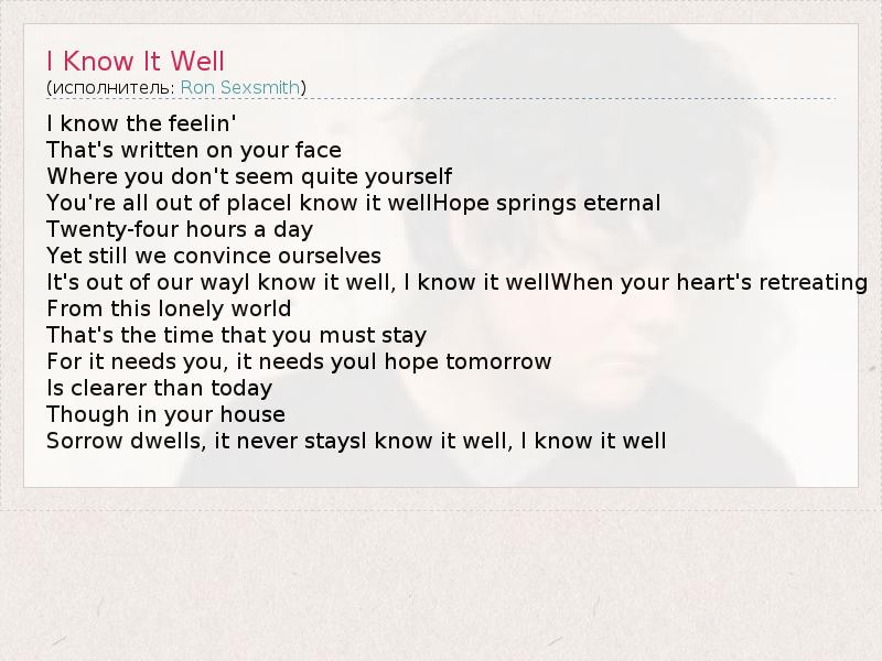 А как ты думаешь, о чем песня "I Know It Well" ?