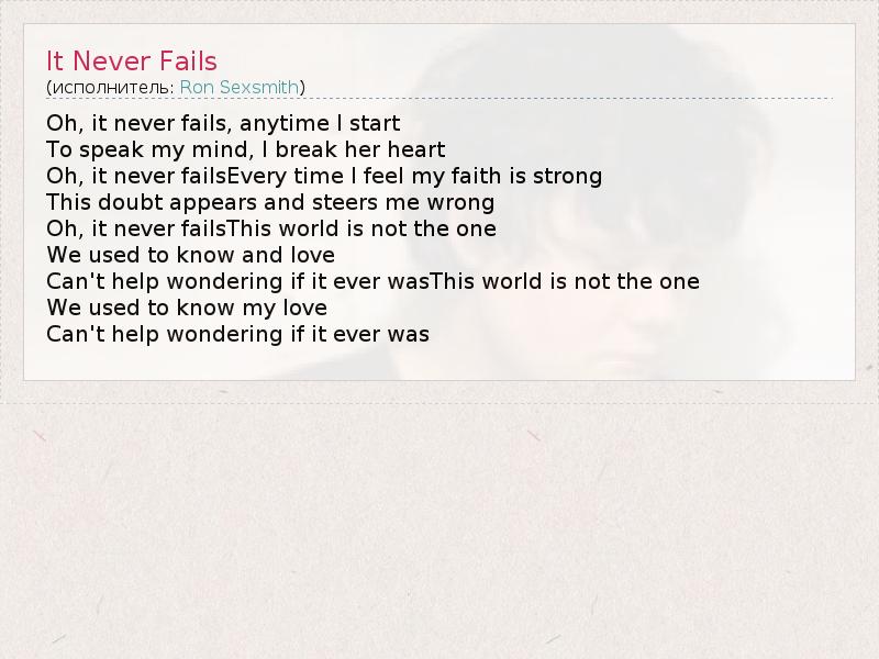 А как ты думаешь, о чем песня "It Never Fails" ?