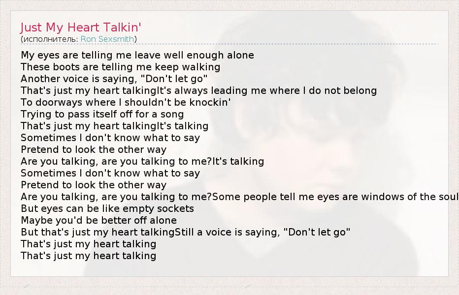А как ты думаешь, о чем песня "Just My Heart Talkin'" ?