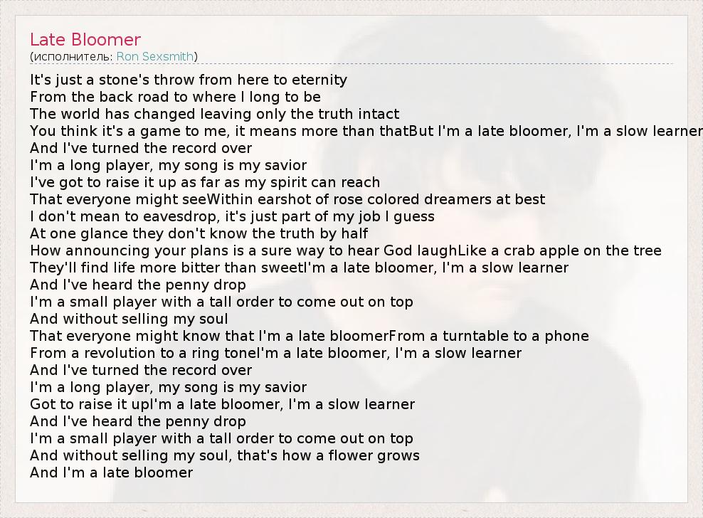 А как ты думаешь, о чем песня "Late Bloomer" ?