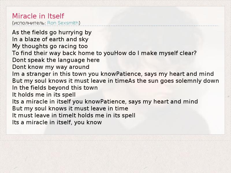 А как ты думаешь, о чем песня "Miracle in Itself" ?