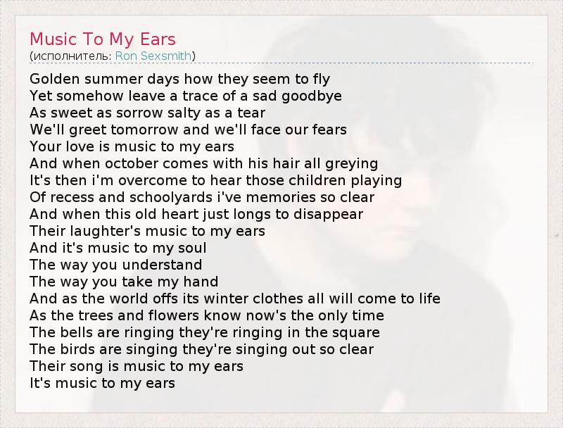 А как ты думаешь, о чем песня "Music To My Ears" ?