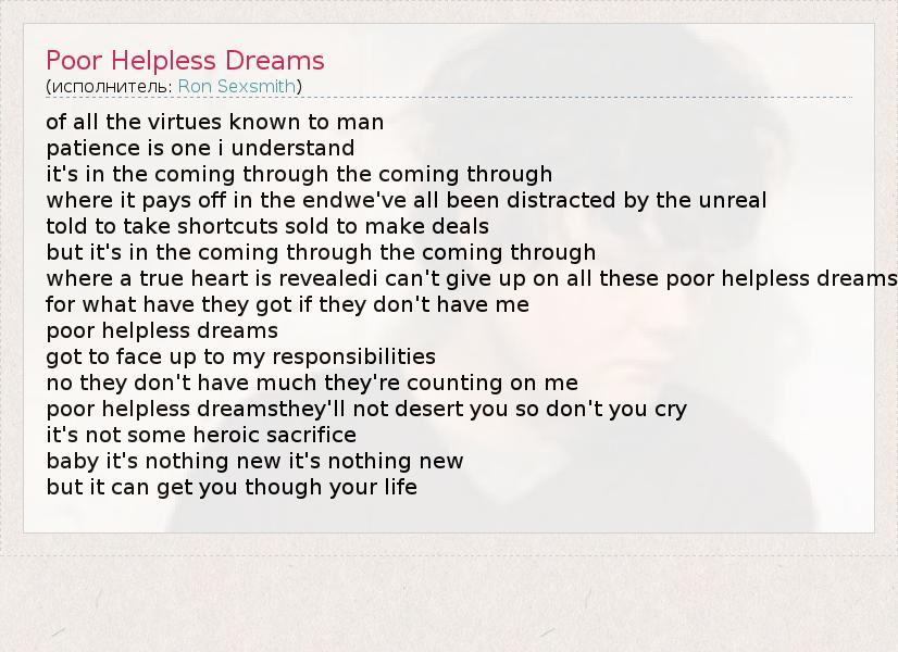 А как ты думаешь, о чем песня "Poor Helpless Dreams" ?