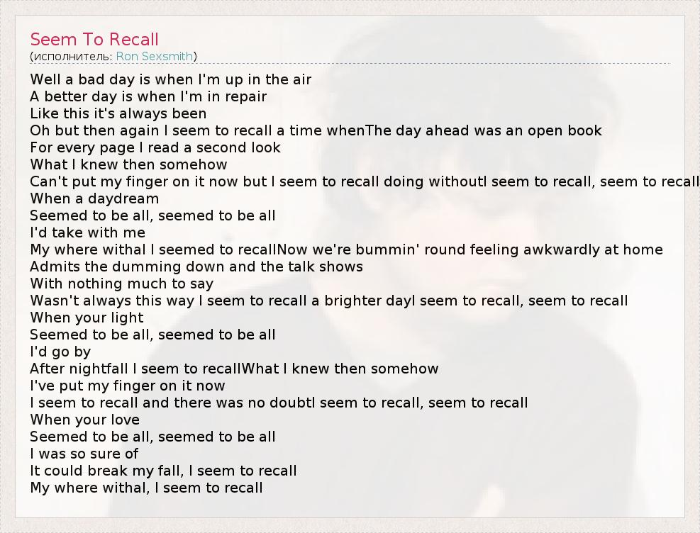 А как ты думаешь, о чем песня "Seem To Recall" ?