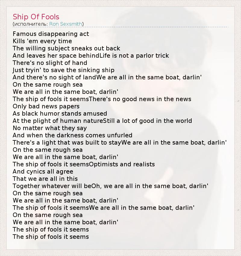 The ship of fools it seemsWe are all in the same boat, darlin'