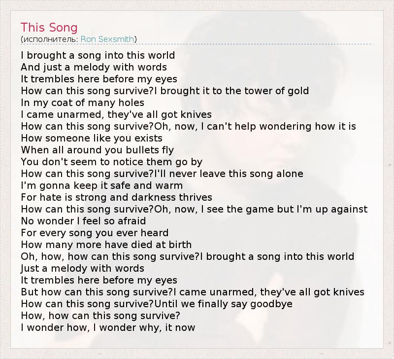 Это интересно:Рональд Секссмит (родился 8 января 1964 г.) является канадским певцом из Онтарио, в настоящее время базируется в Торонто . Он начал свою собственную карьеру, когда ему было четырнадцать лет, и выпустили первые записи собственного материала семь лет спустя, в 1985 году. Некоторые из тех исполнителей, которые вдохновили Секссмита, Пол Маккартни , Элвис Костелло , Рэй Дэвис и Джон Хайатт , в настоящее... продолжение