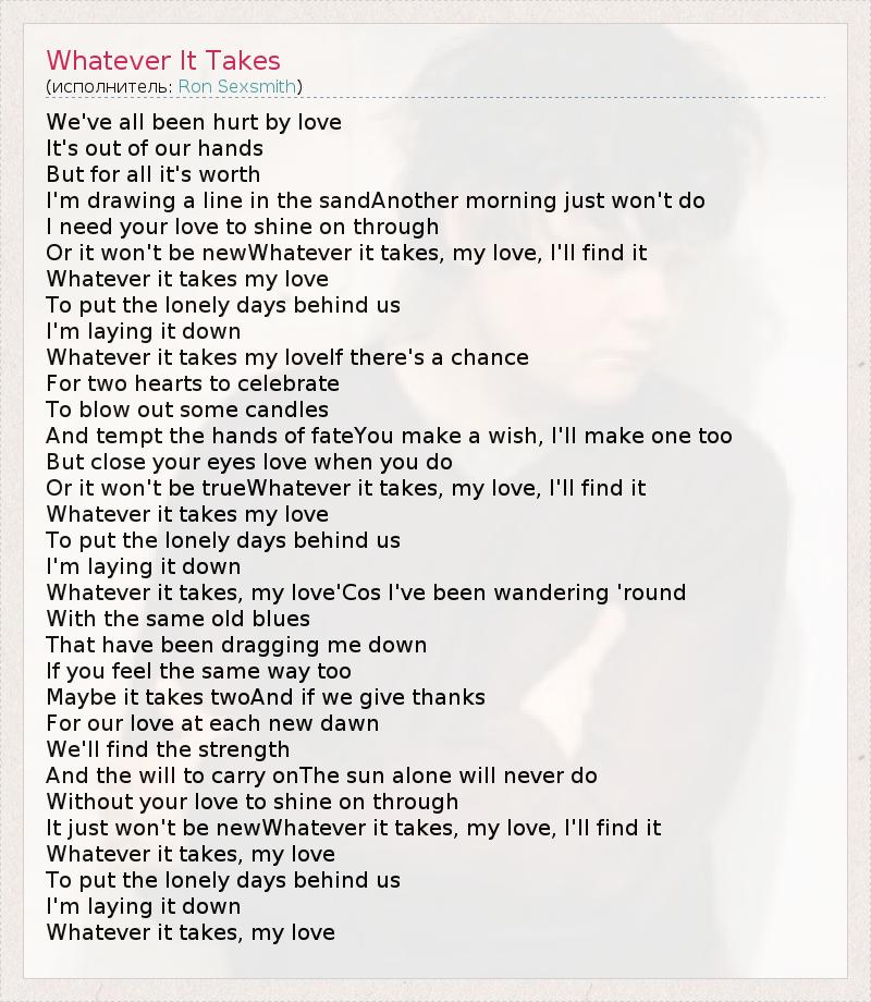 А как ты думаешь, о чем песня "Whatever It Takes" ?