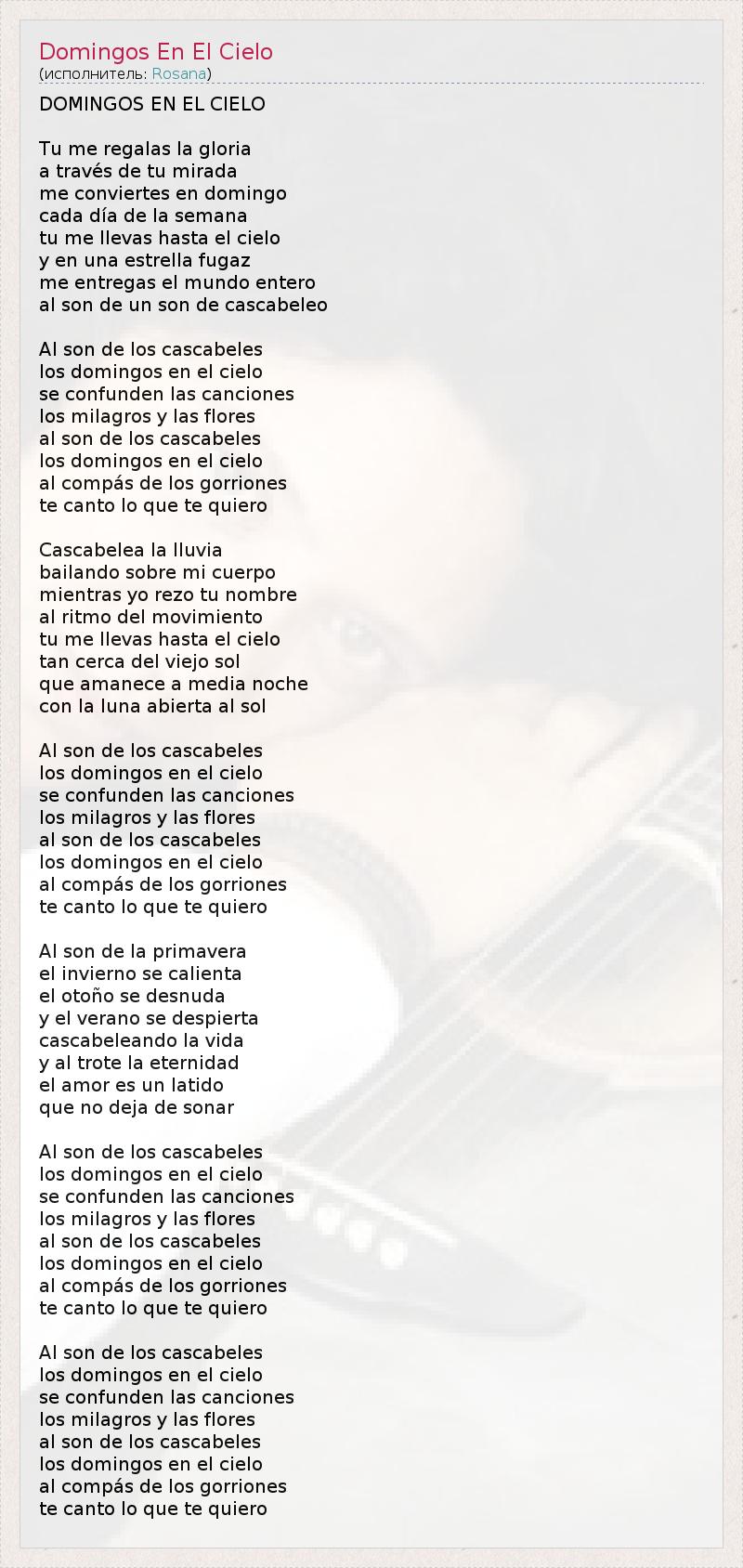 ГлавнаяИсполнителиRosanaDomingos En El Cielo