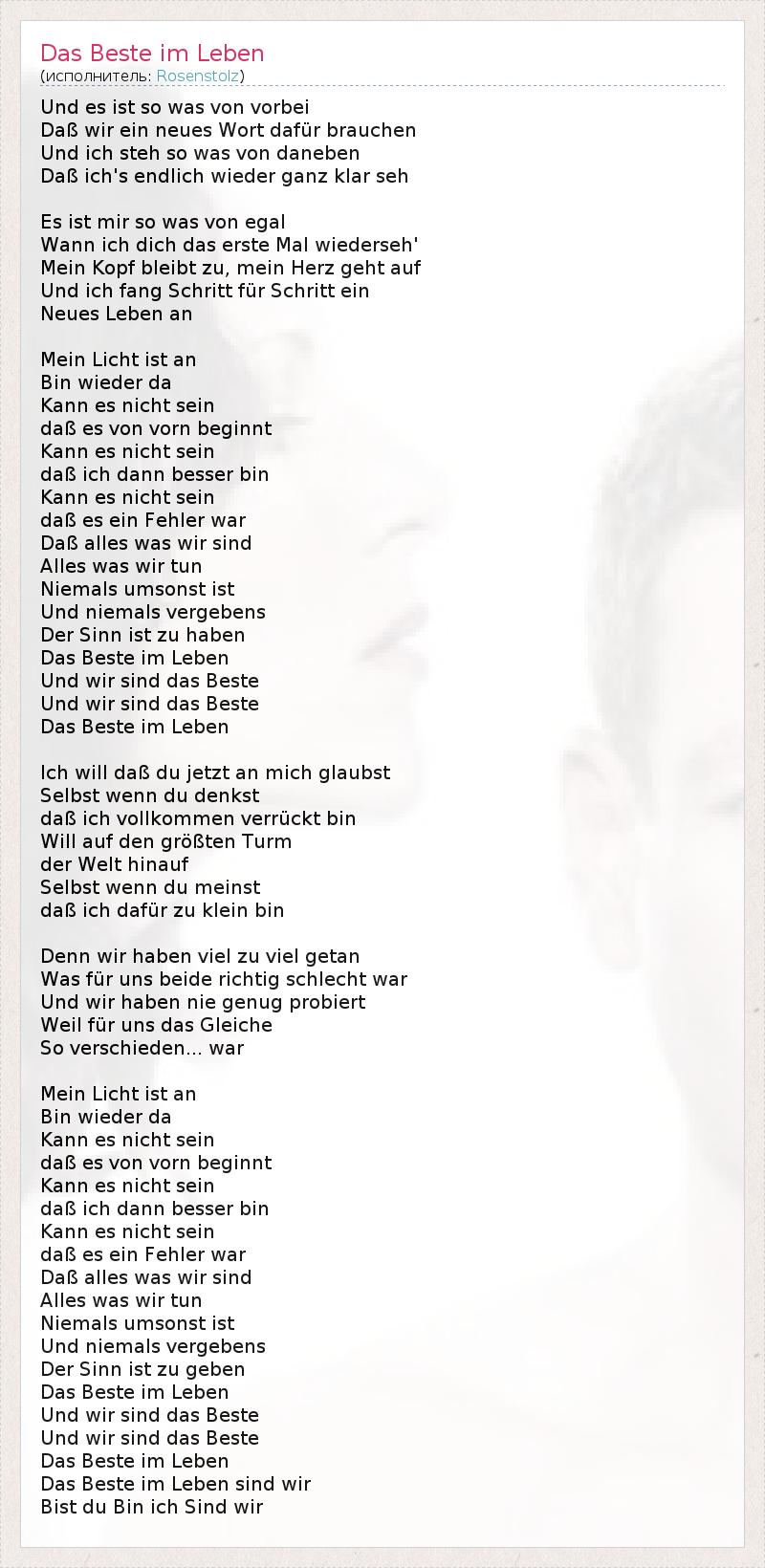 А как ты думаешь, о чем песня "Das Beste im Leben" ?