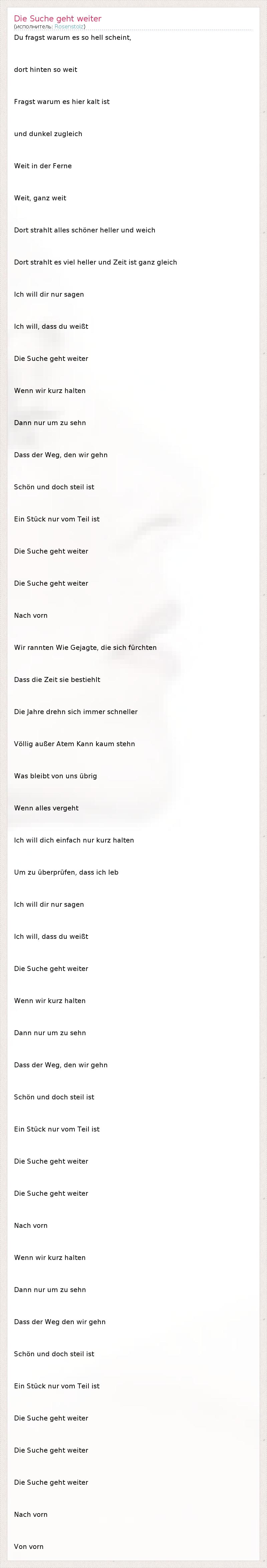 А как ты думаешь, о чем песня "Die Suche geht weiter" ?