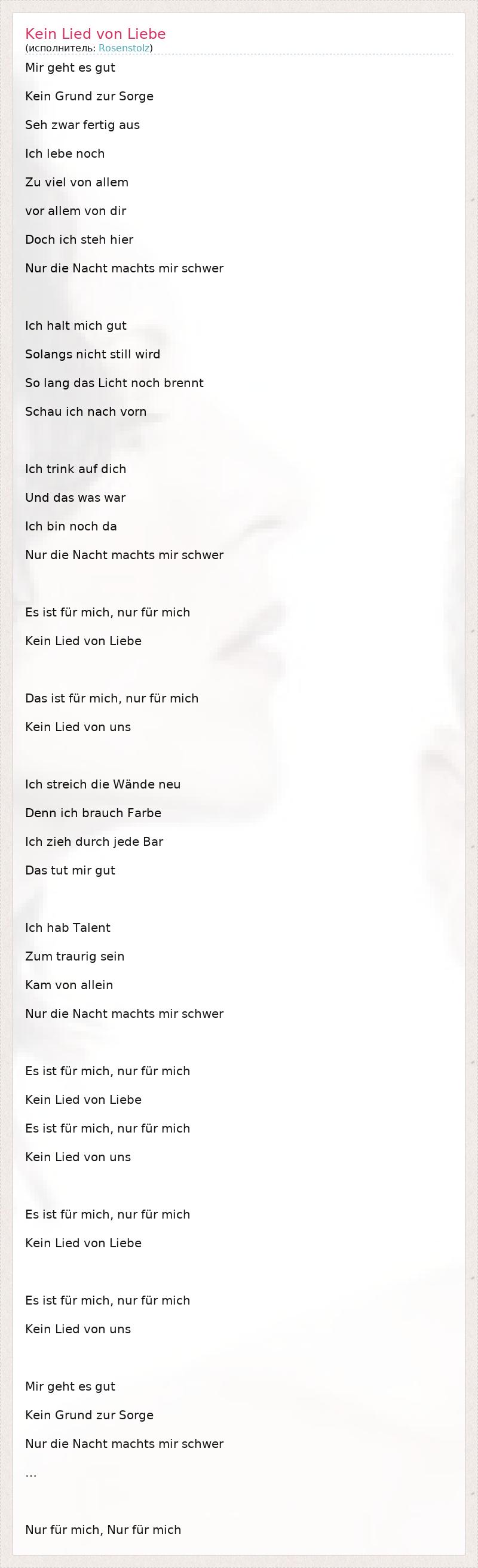 А как ты думаешь, о чем песня "Kein Lied von Liebe" ?