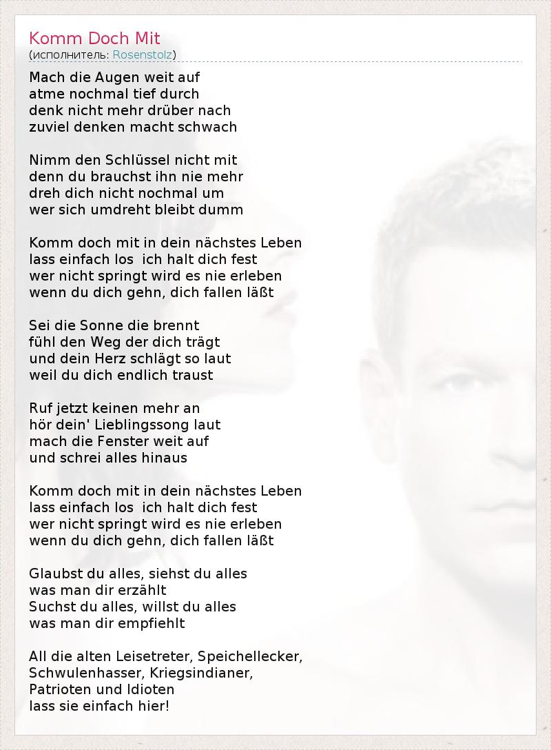 А как ты думаешь, о чем песня "Komm Doch Mit" ?