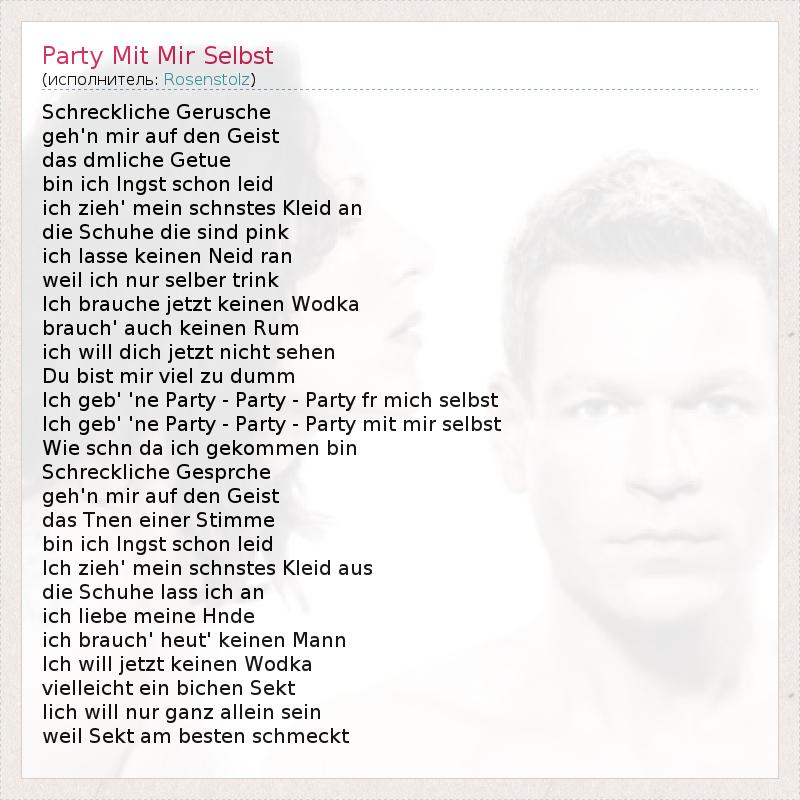 А как ты думаешь, о чем песня "Party Mit Mir Selbst" ?