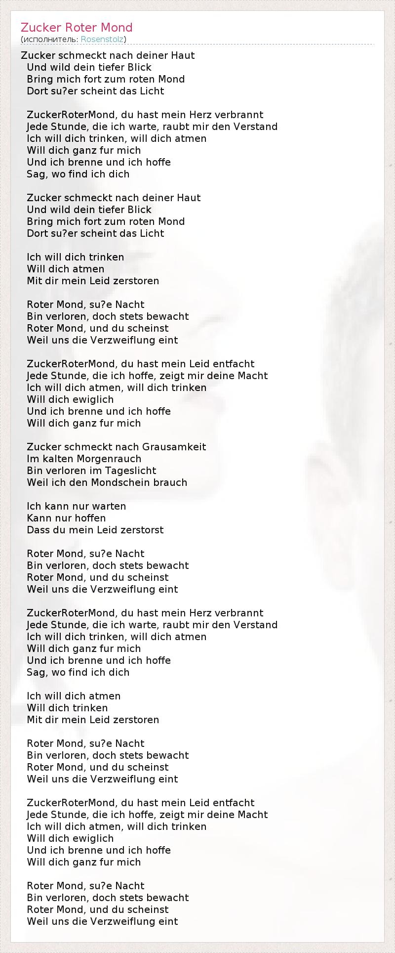 А как ты думаешь, о чем песня "Zucker Roter Mond" ?