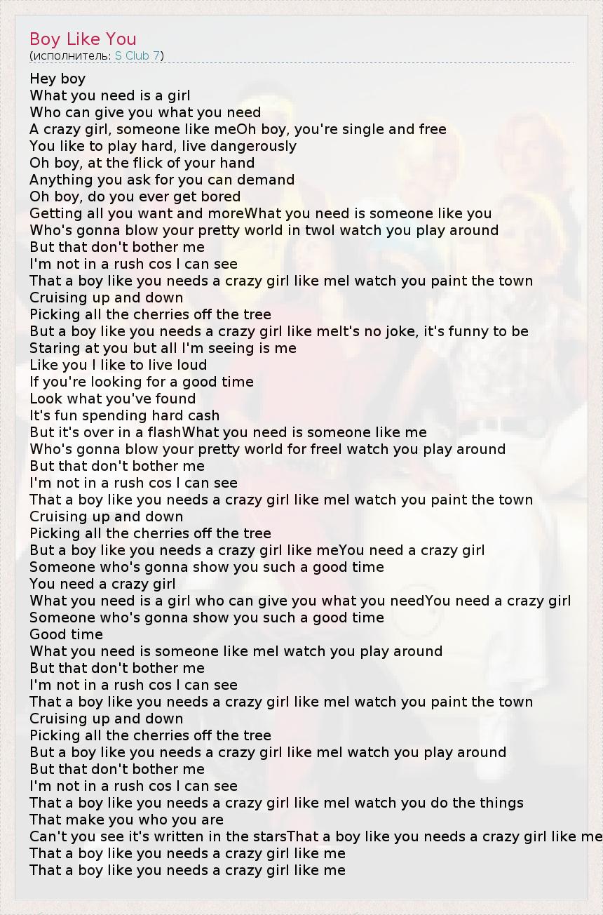 But a boy like you needs a crazy girl like meYou need a crazy girl