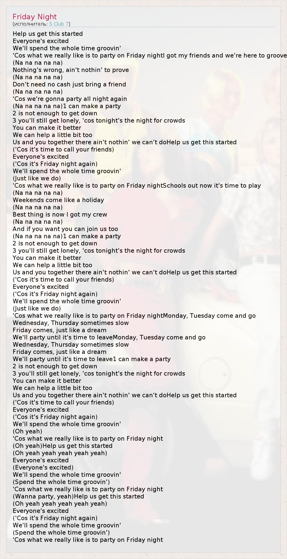 ('Cos it's Friday night again)