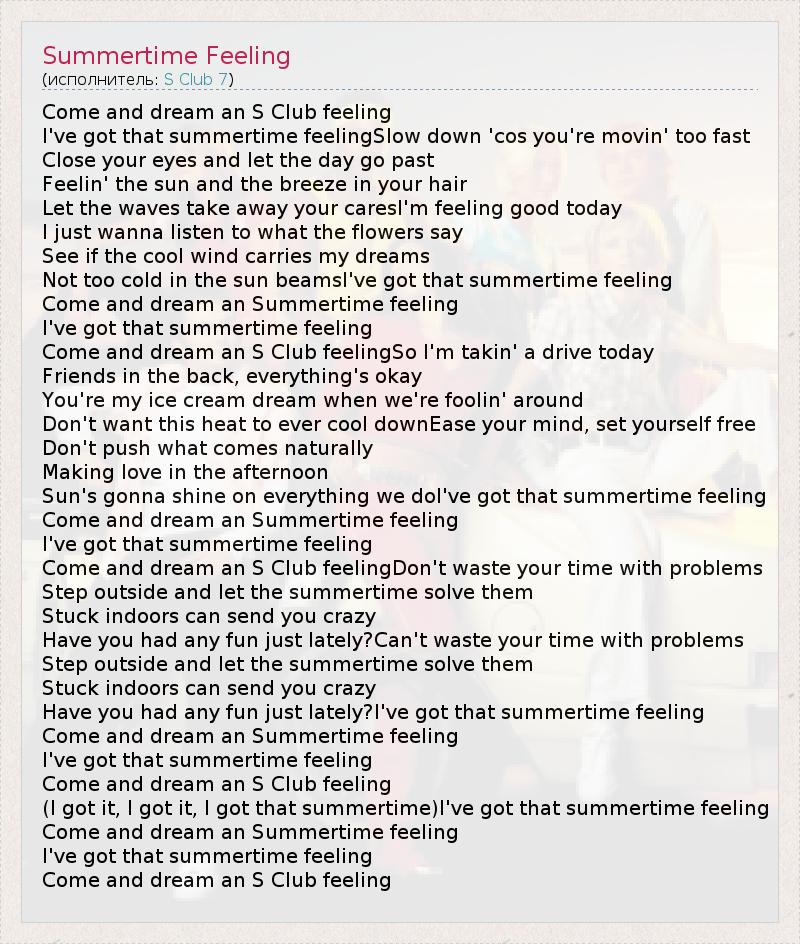 А как ты думаешь, о чем песня "Summertime Feeling" ?