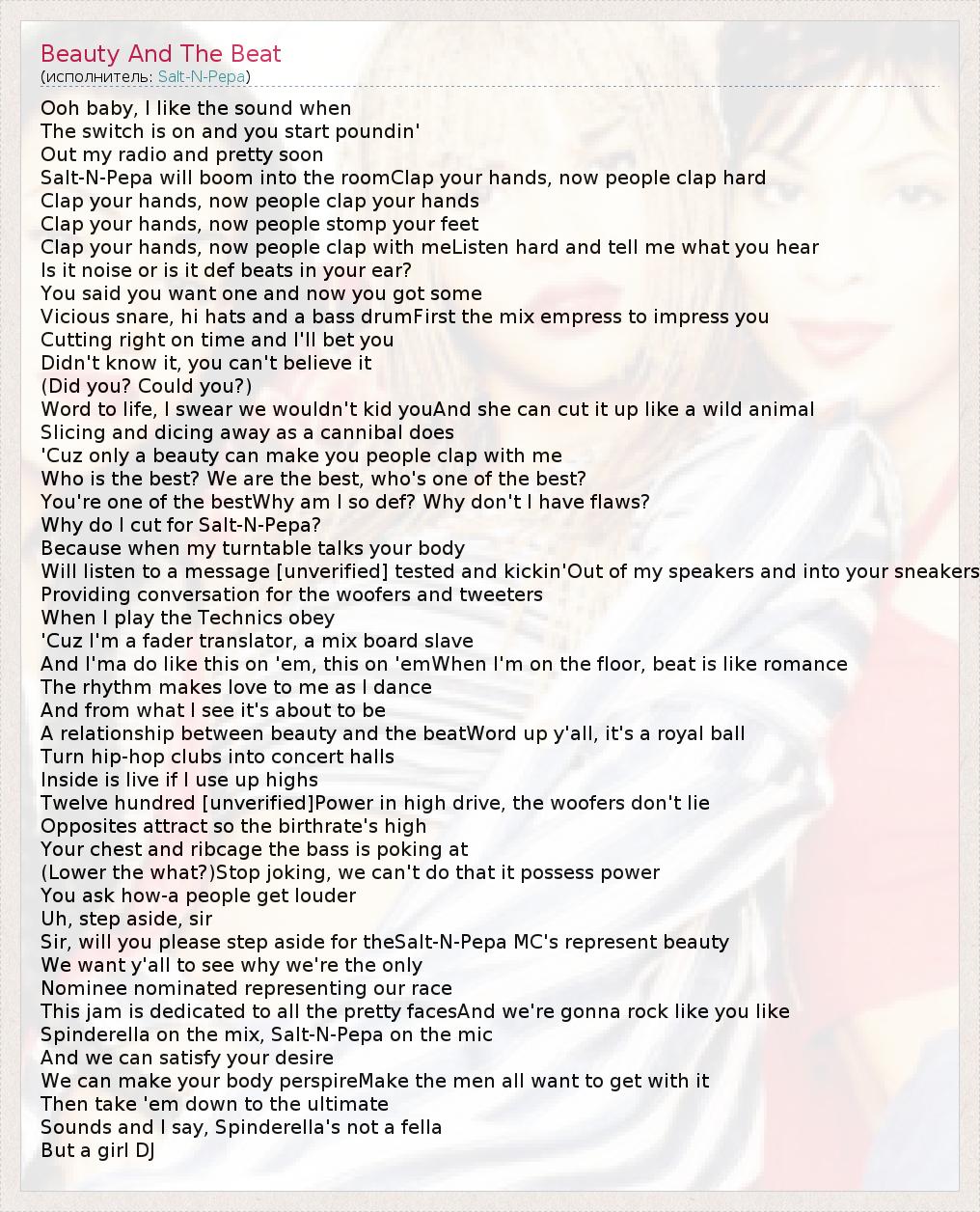 А как ты думаешь, о чем песня "Beauty And The Beat" ?