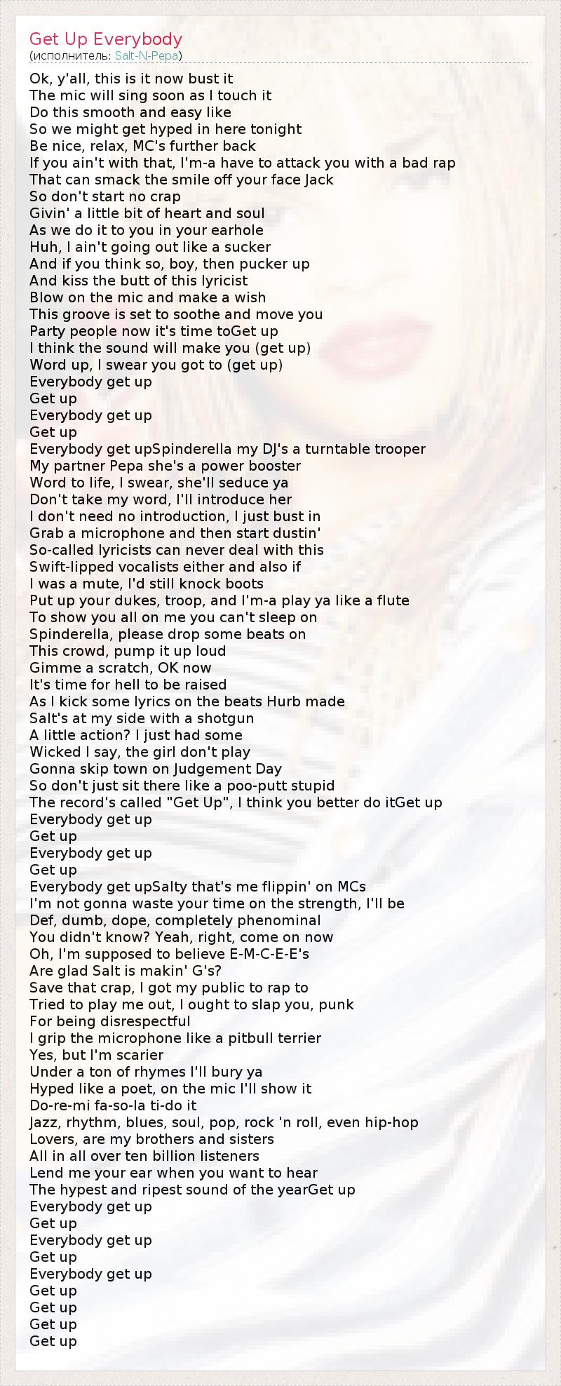 А как ты думаешь, о чем песня "Get Up Everybody" ?