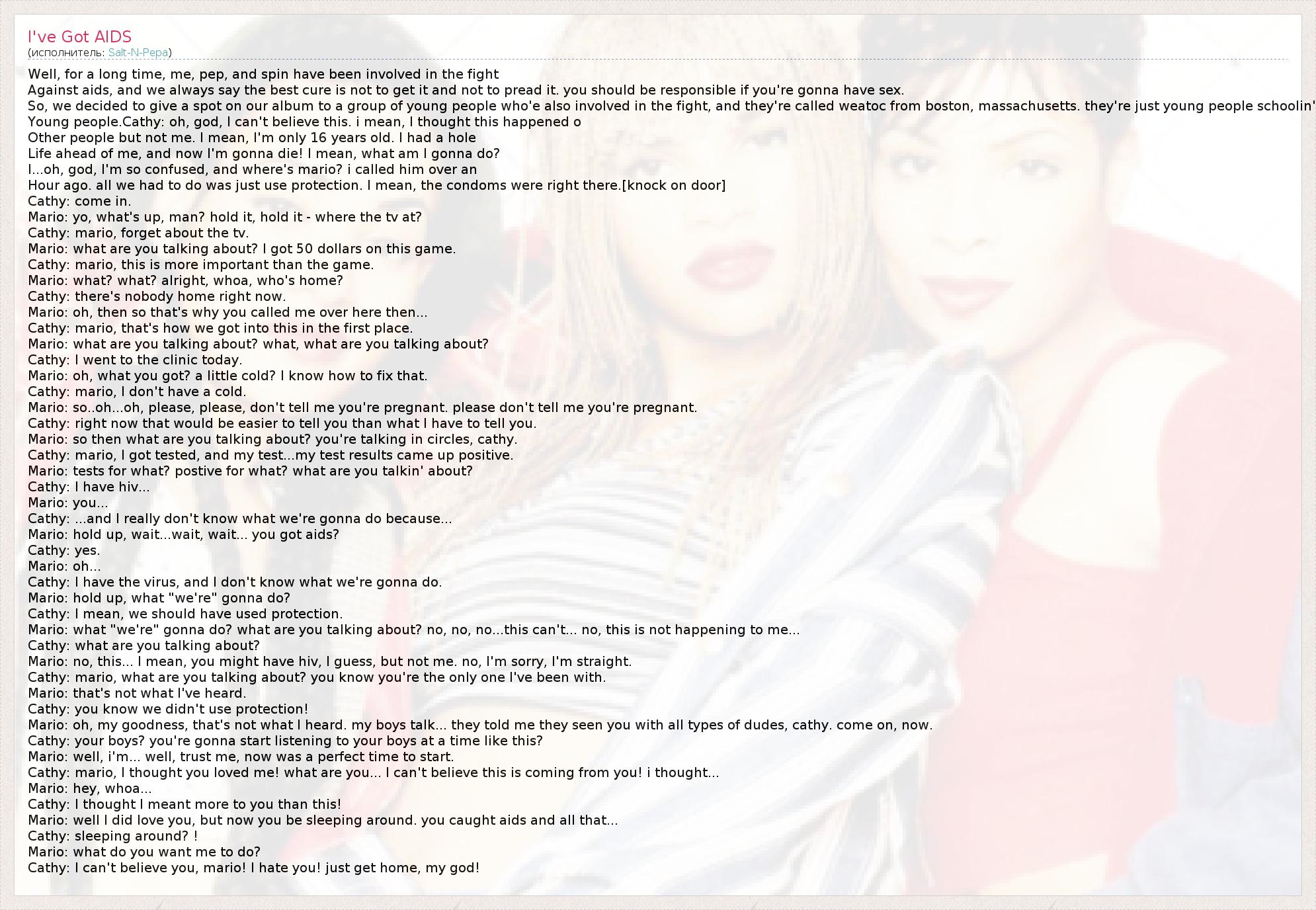 А как ты думаешь, о чем песня "I've Got AIDS" ?