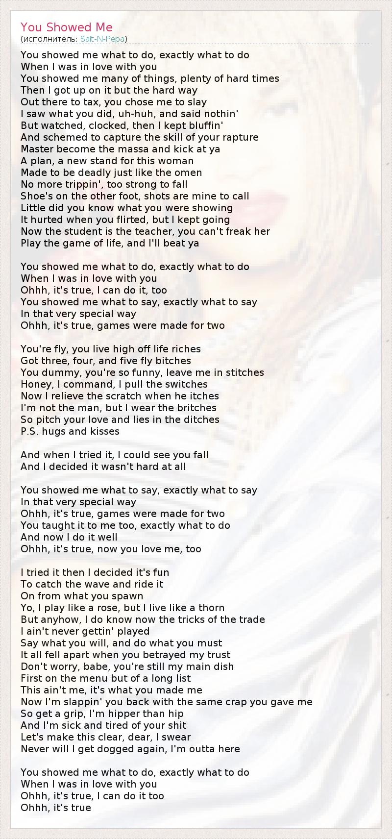А как ты думаешь, о чем песня "You Showed Me" ?