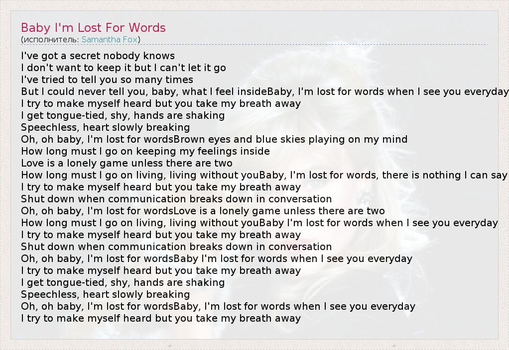 ГлавнаяИсполнителиSamantha FoxBaby I'm Lost For Words