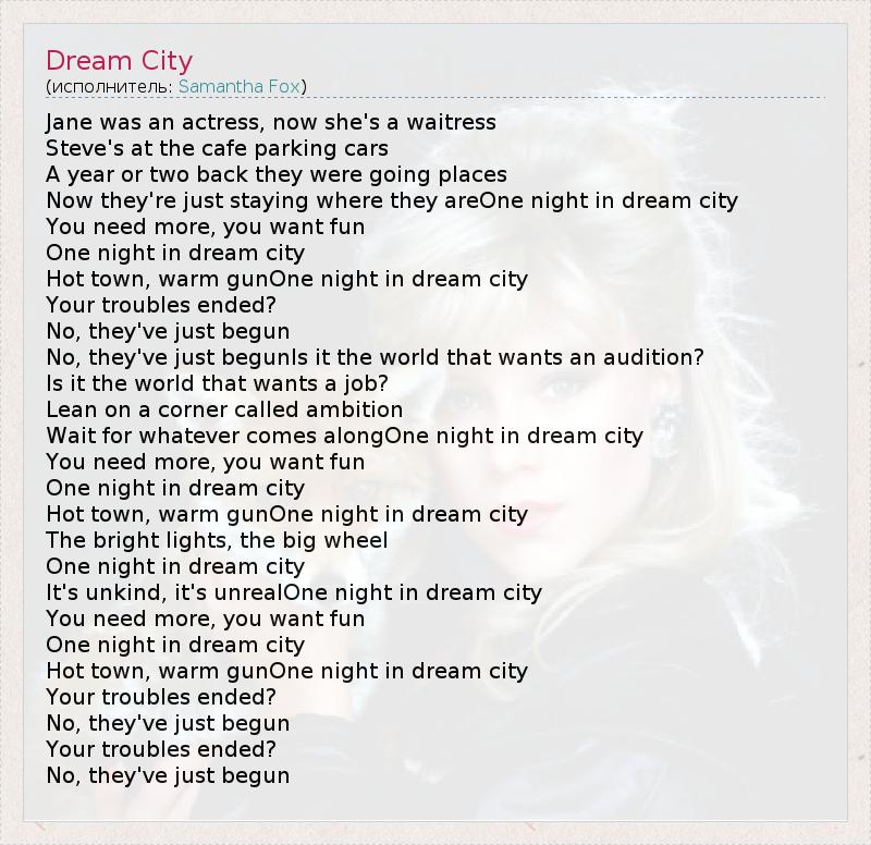 Это интересно:Родилась 15 апреля 1966 года, Лондон, Англия. Когда она сдавала экзамены нулевого уровня, хорошо обеспеченная 16-летняя Саманта была обнаружена газетой SUN и продвинута как обнаженная до пояса модель. Ее дебютный сингл в 1986 году, "Touch Me", был благожелательно воспринят критиками, отметивших ее сильную вокальную работу. Эта вещь попала на третье место в чартсы. После этого она выпускает "Do... продолжение