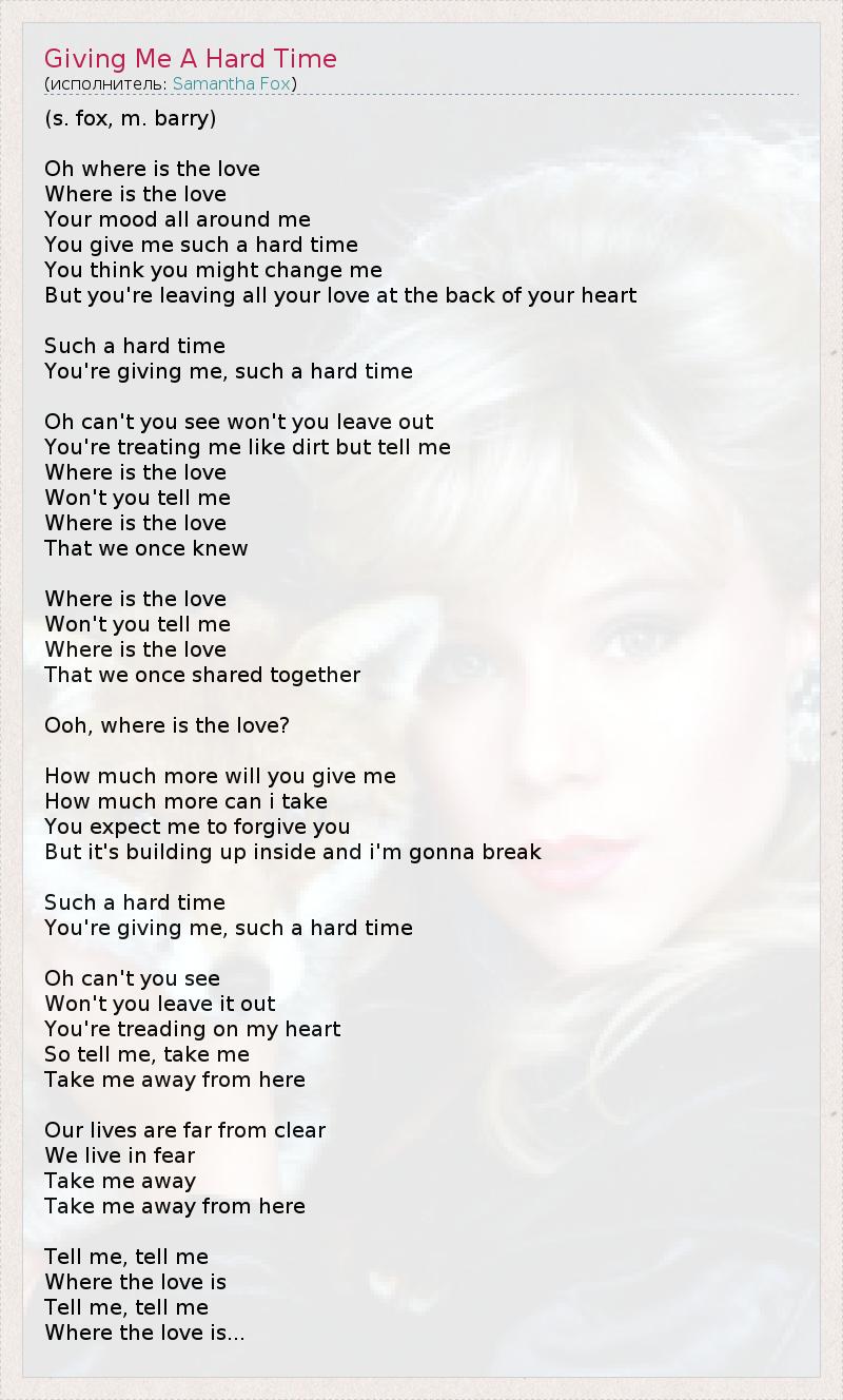 А как ты думаешь, о чем песня "Giving Me A Hard Time" ?