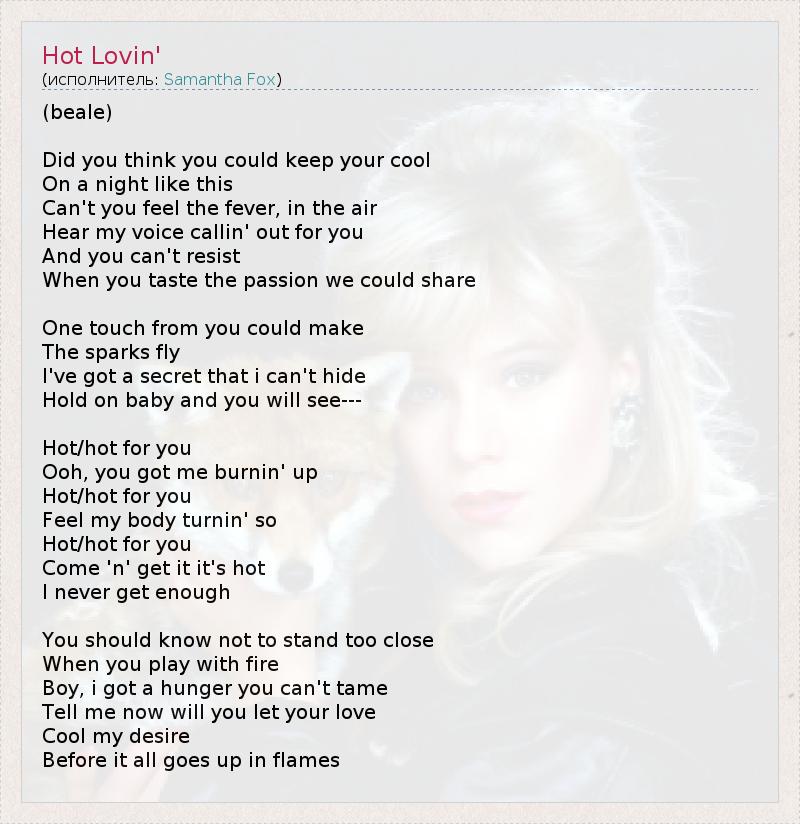 А как ты думаешь, о чем песня "Hot Lovin'" ?
