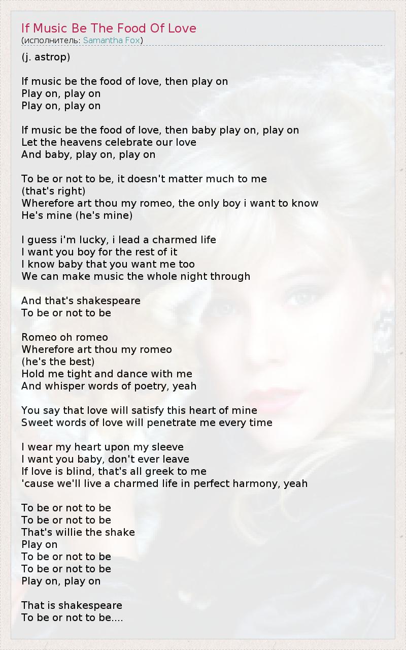 ГлавнаяИсполнителиSamantha FoxIf Music Be The Food Of Love