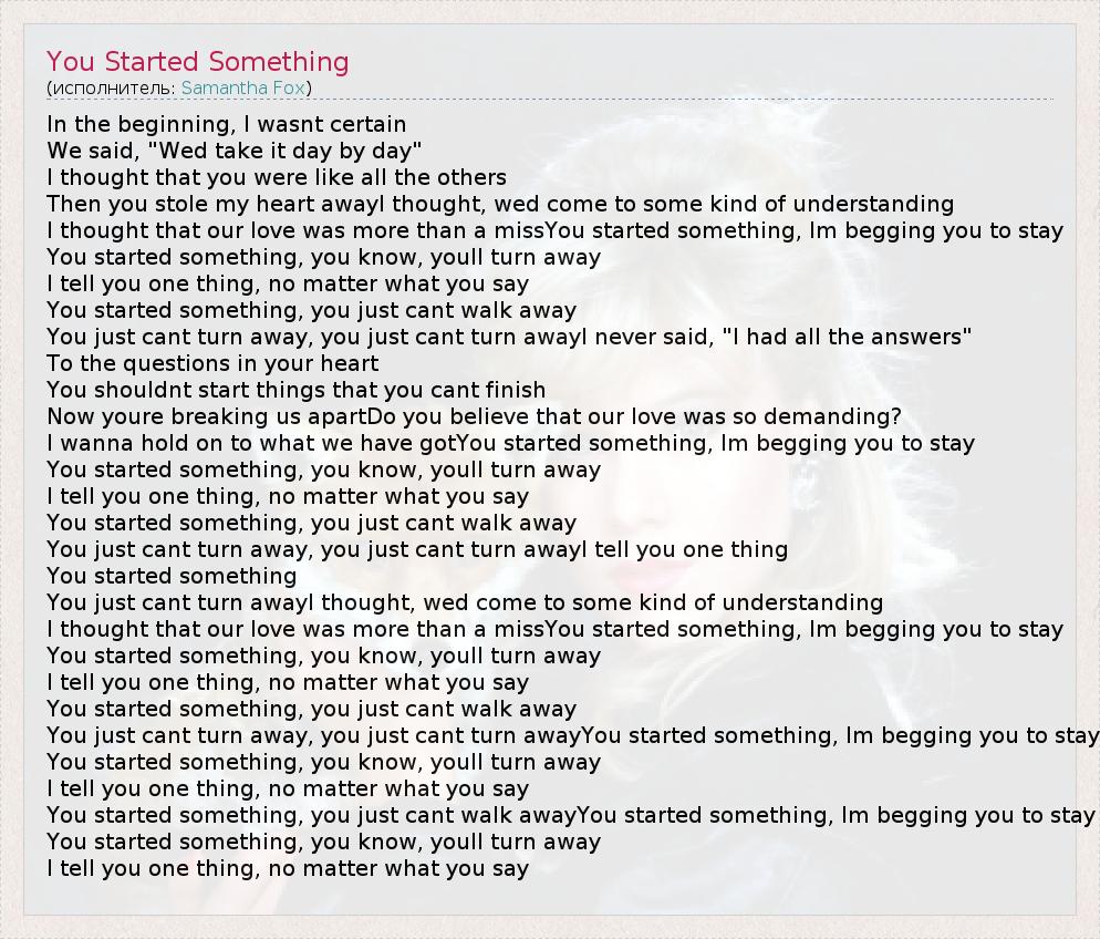 А как ты думаешь, о чем песня "You Started Something" ?