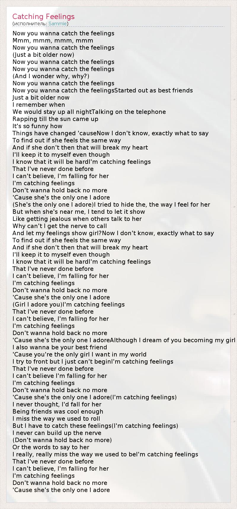 But I have to catch these feelings(I'm catching feelings)