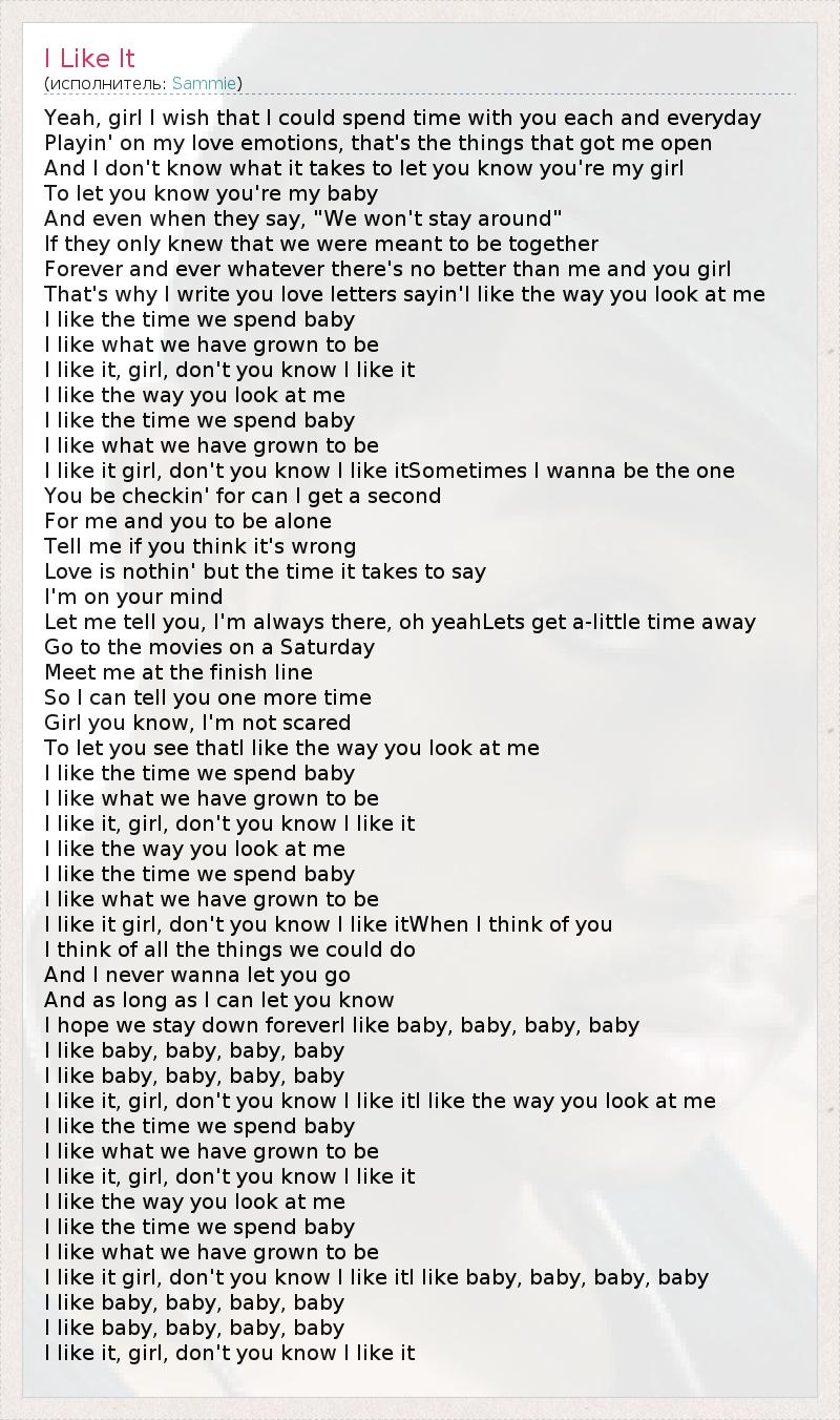 I like it girl, don't you know I like itI like baby, baby, baby, baby