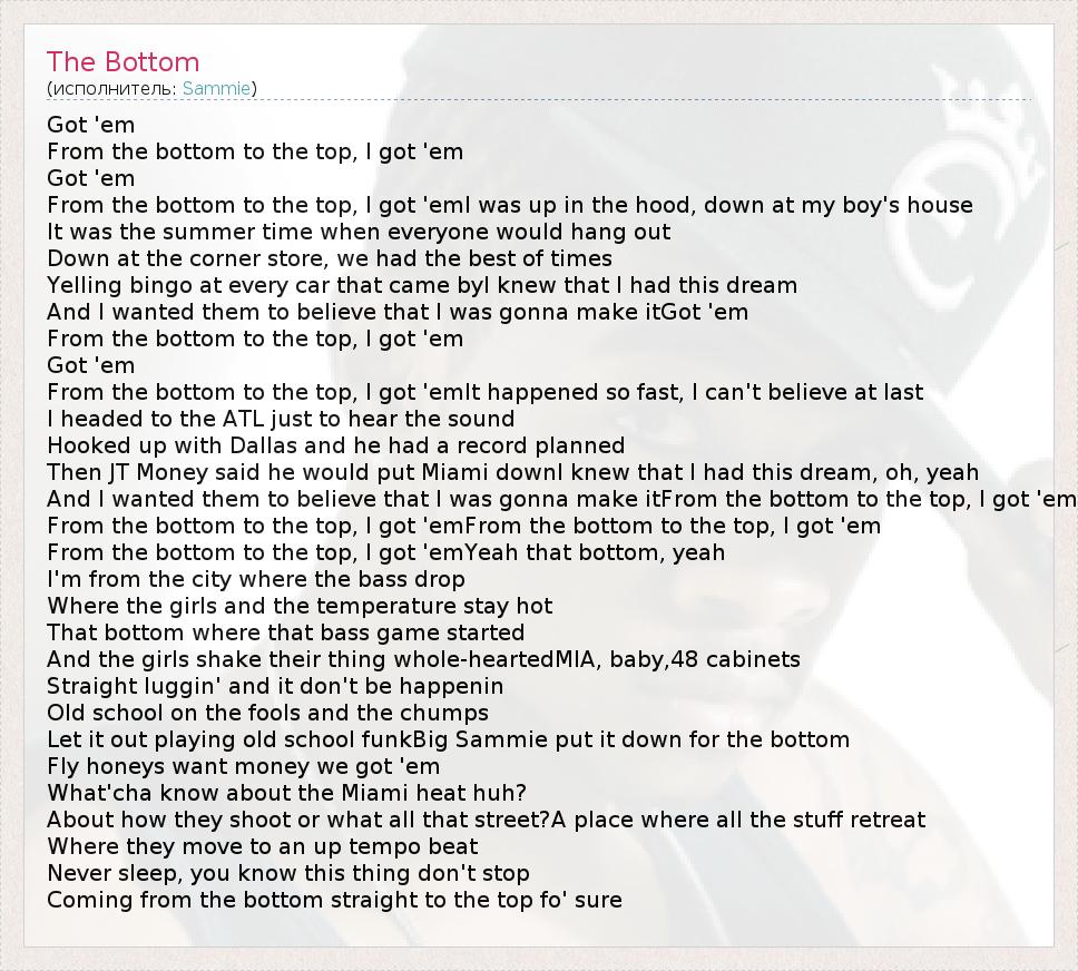 А как ты думаешь, о чем песня "The Bottom" ?