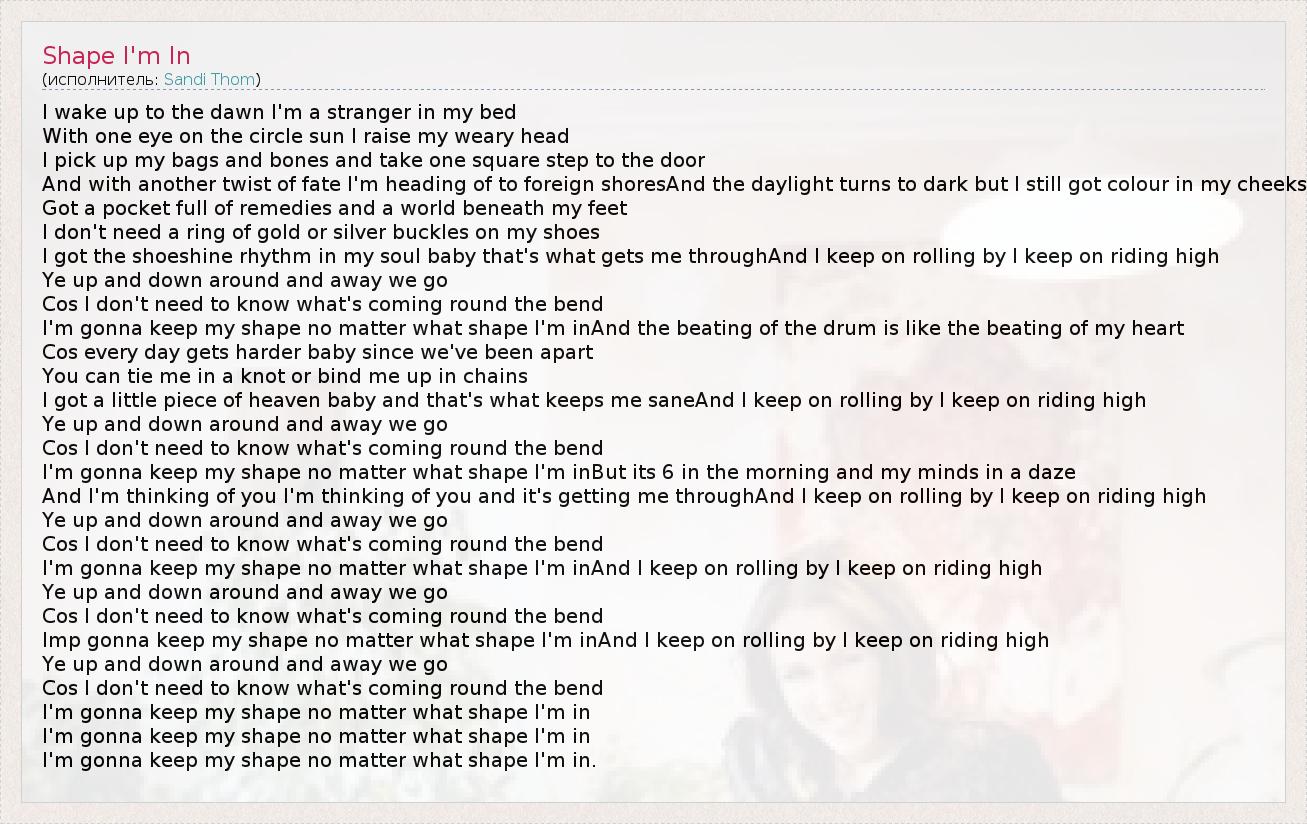 А как ты думаешь, о чем песня "Shape I'm In" ?