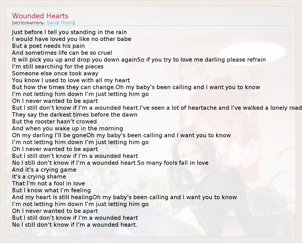 А как ты думаешь, о чем песня "Wounded Hearts" ?