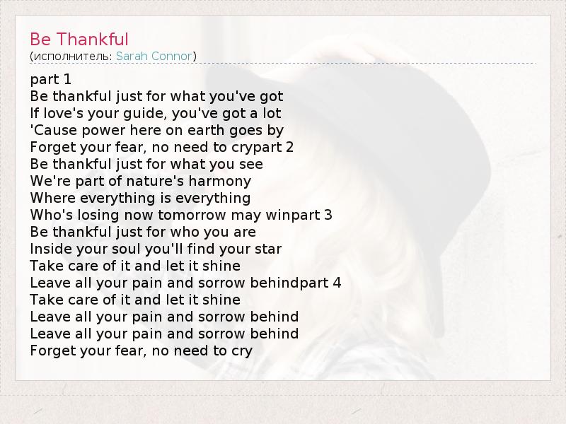 А как ты думаешь, о чем песня "Be Thankful" ?