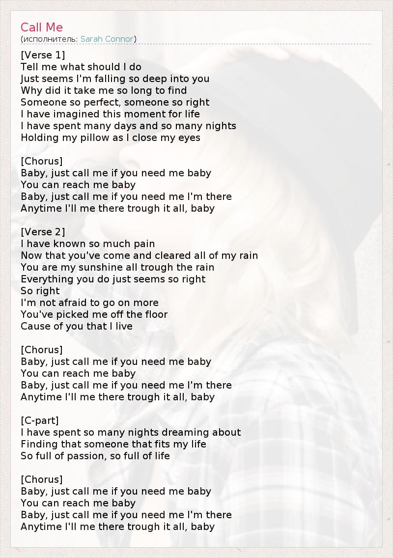 Baby, just call me if you need me baby