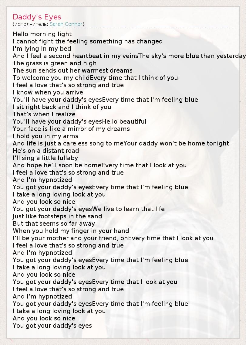 А как ты думаешь, о чем песня "Daddy's Eyes" ?
