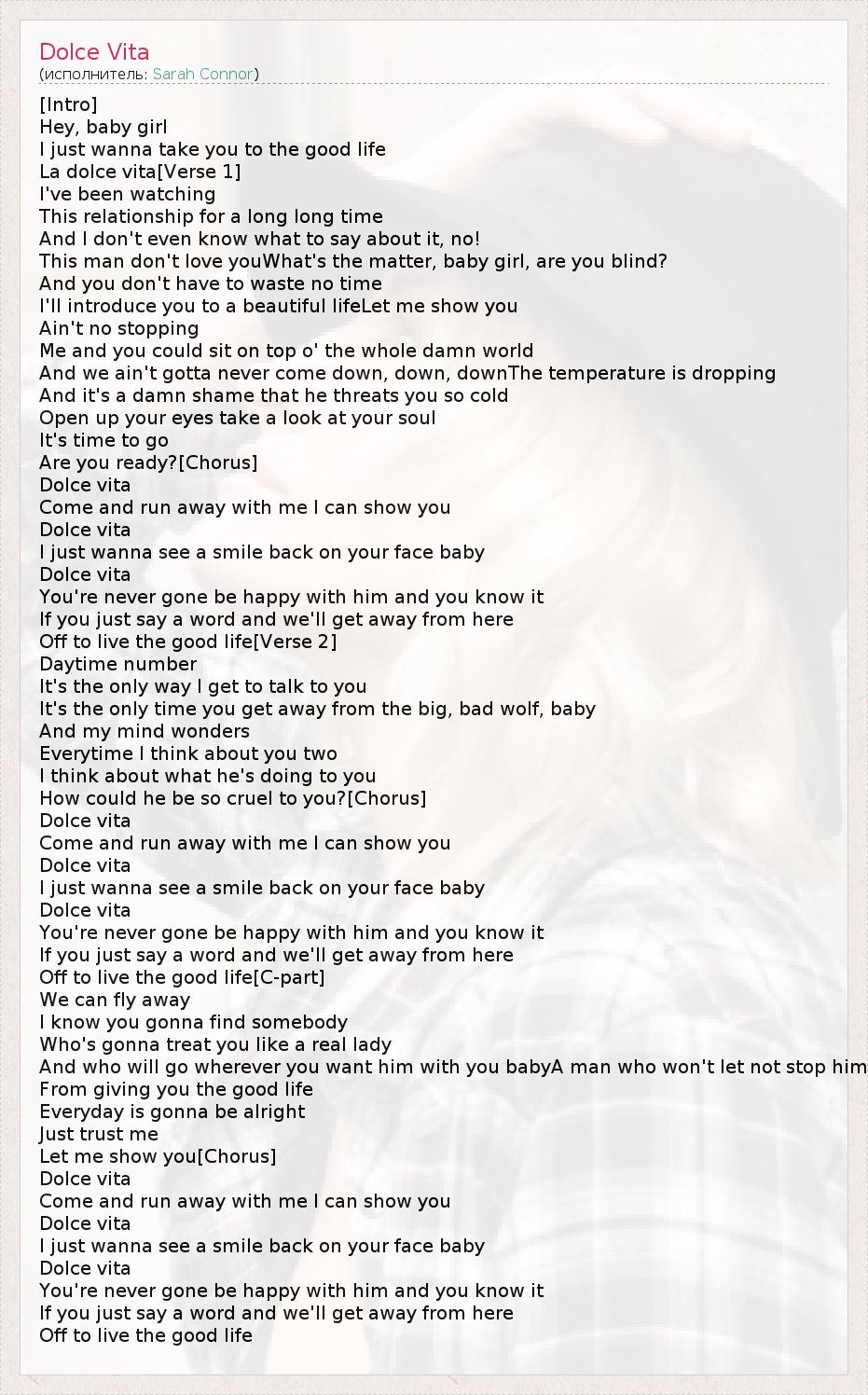 А как ты думаешь, о чем песня "Dolce Vita" ?