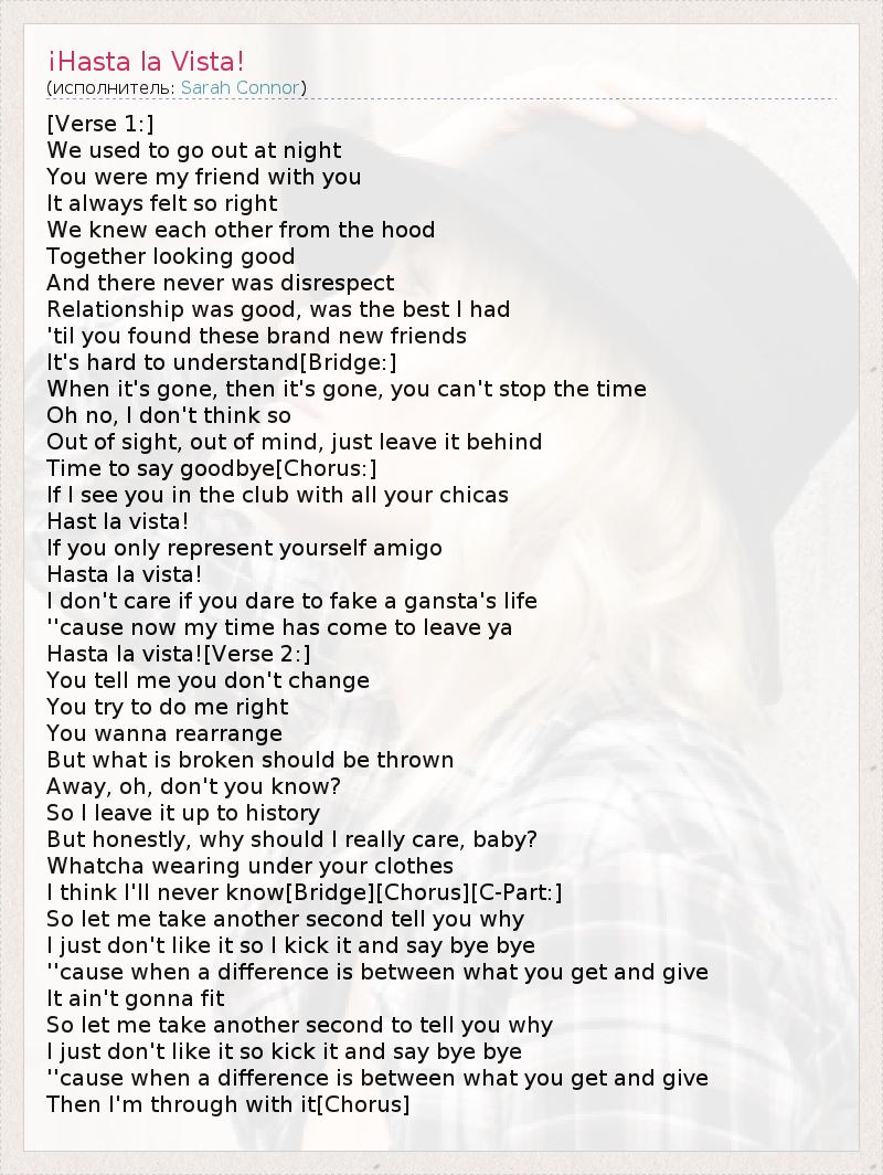 А как ты думаешь, о чем песня "¡Hasta la Vista!" ?