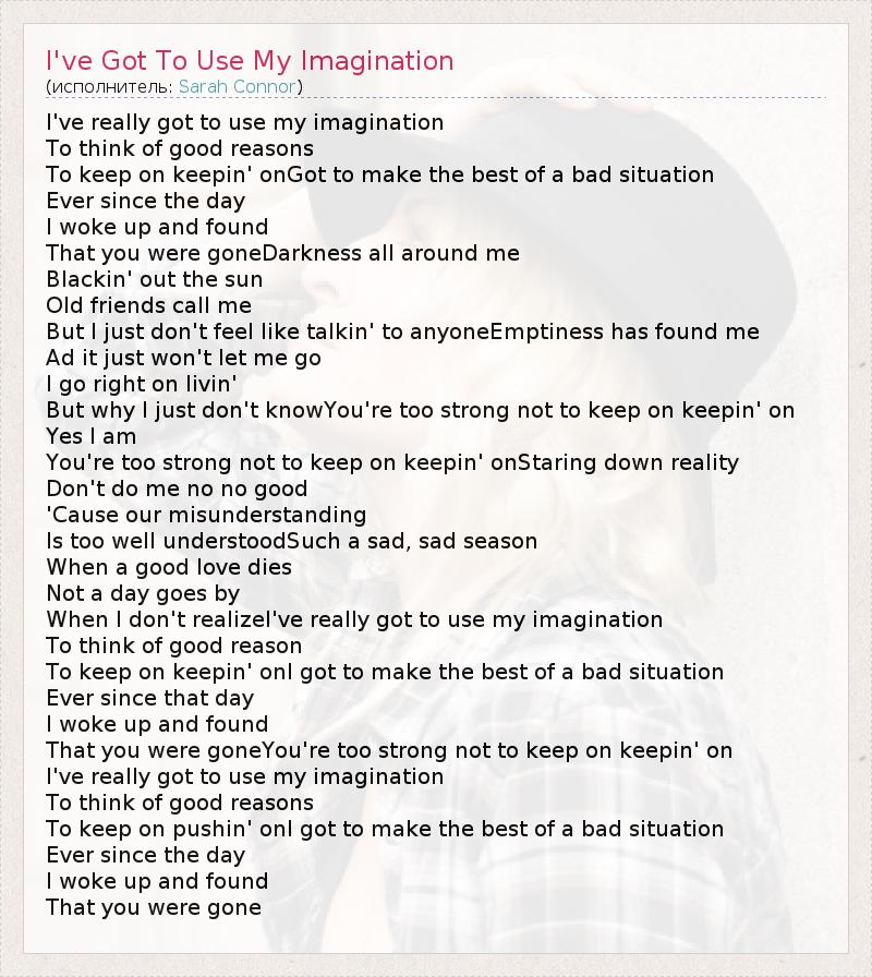 ГлавнаяИсполнителиSarah ConnorI've Got To Use My Imagination