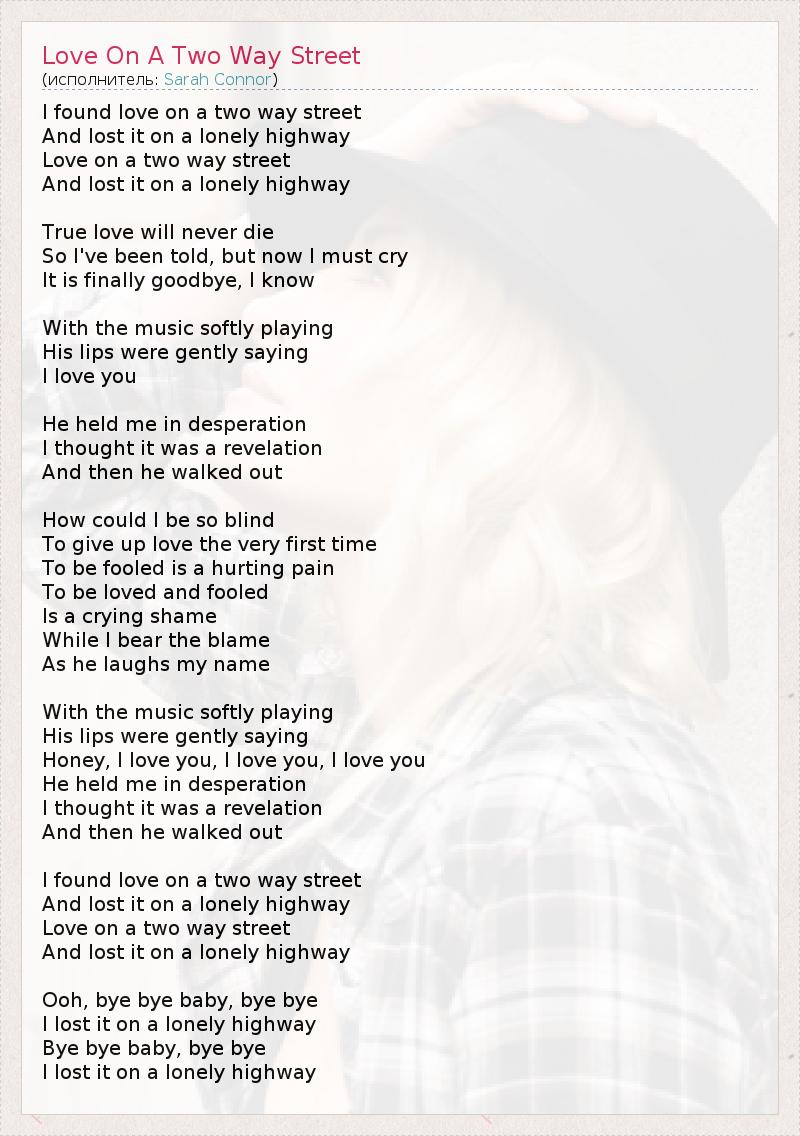 ГлавнаяИсполнителиSarah ConnorLove On A Two Way Street